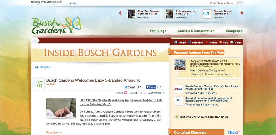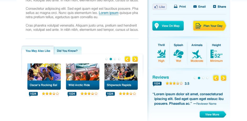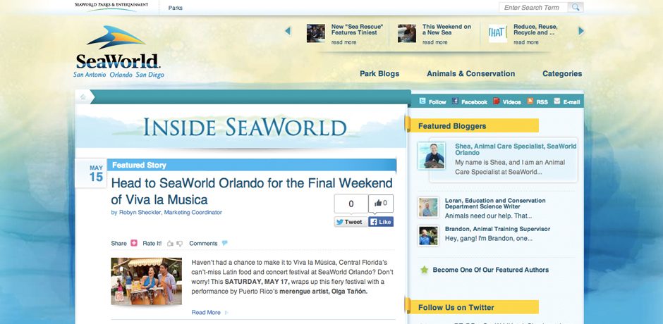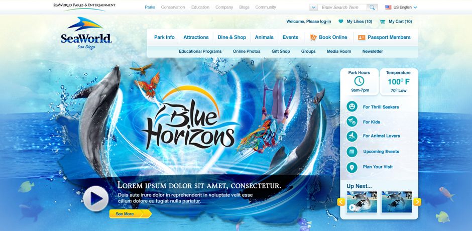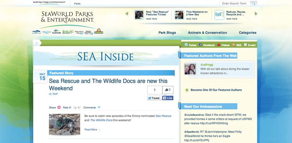 Within a two-year digital strategy, our team worked closely with all levels of the Seaworld Parks & Entertainment staff to unify the on-line experience of this family of theme parks. With a wide variety of brand identities that include SeaWorld, Busch Gardens, Aquatica, and Sesame Street, our team developed in-depth discovery documents to access the distribution of content through out various points of engagement. From brand websites, to blogs, to social media channels, I contributed on extensive user experience ideation, created information architectures and wireframes, built iconography language, managed design production with junior members and freelancers, prepared files for development, and maintained extensions of the brands; from conservation efforts to booking processes.
